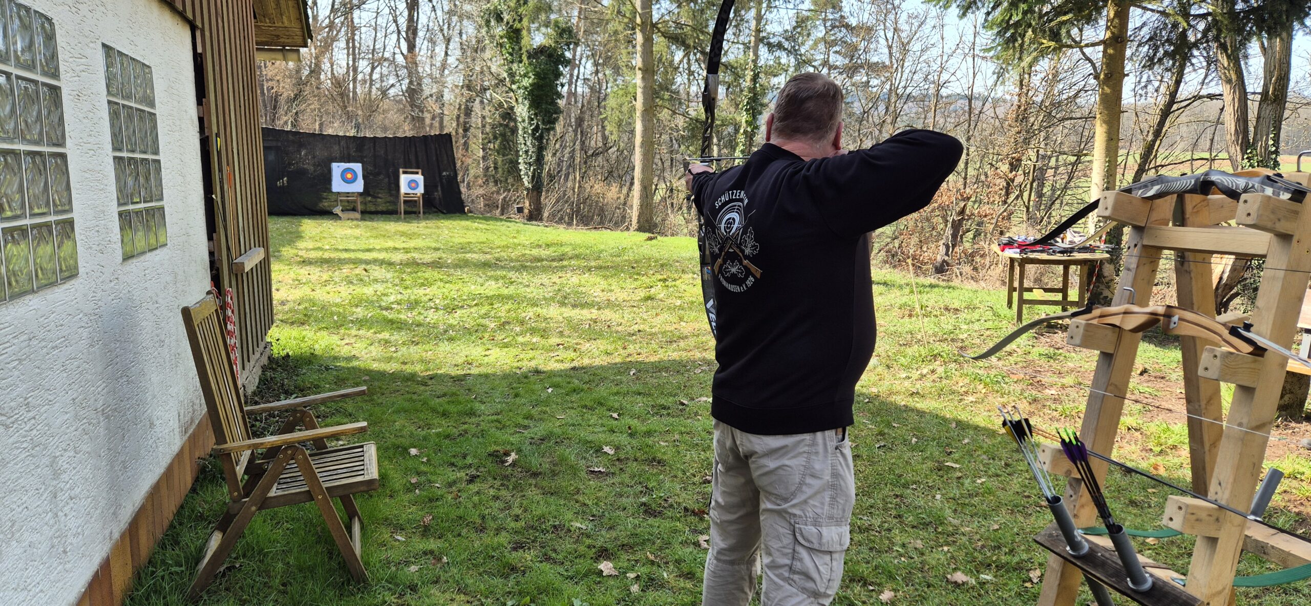 Ab sofort kann Sonntags von 10-13 Uhr bei gutem Wetter auf dem Außengelände Bogen geschossen werden